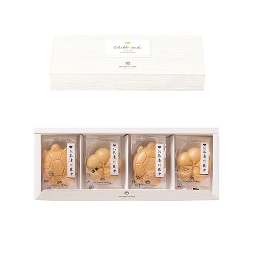 ●鯛茶漬け5g×1、梅茶漬け5g×1、鮭茶漬け6g×1、たらこ茶漬け5g×1●箱10×28×4.5cm(日本製)●賞味期限/6ヶ月(製造日より)